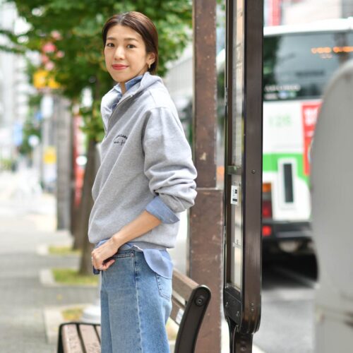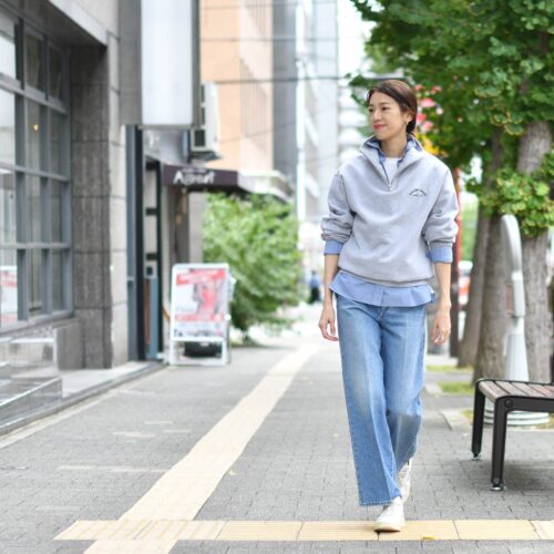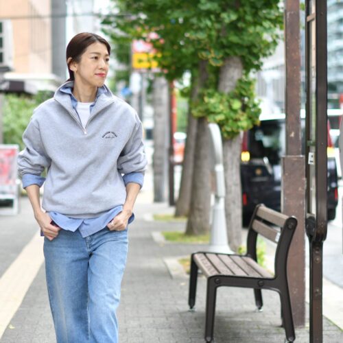 ライトグレーのお色目がスウェットらしいカジュアル感がございますよね。