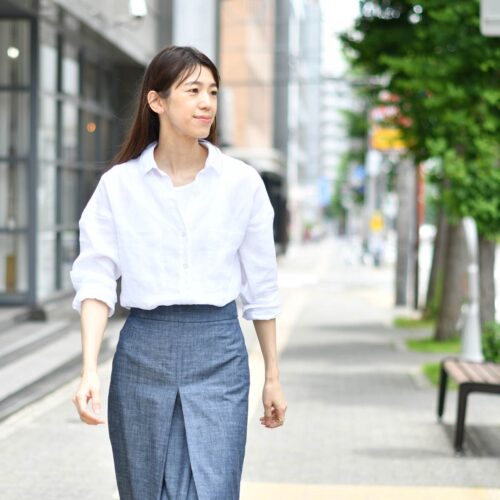 久々に登場致しましたFinamoreのリネンシャツ。モデル“SONIA”