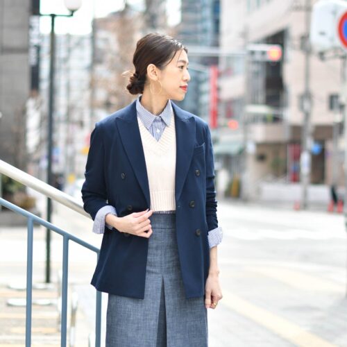 そして、トップスはCIRCOLOのWのネイビーのジャケット。
