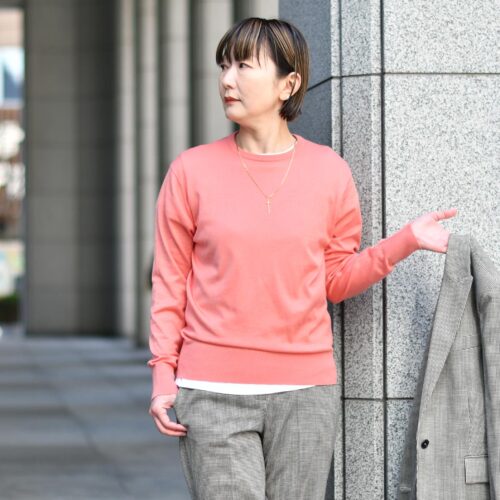 JOHN SMEDLEY【ジョンスメドレー】クルーネック長袖ニット 30G EMMA CORAL コットン コーラルピンク