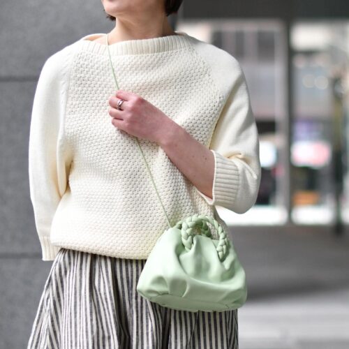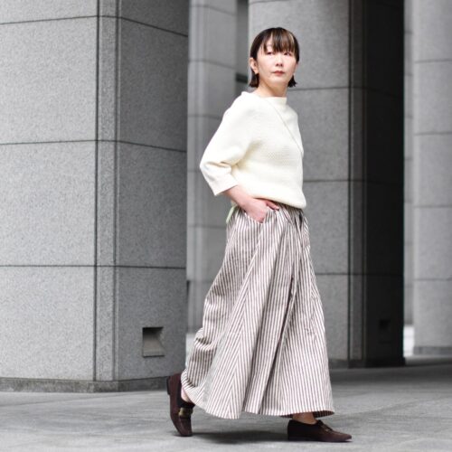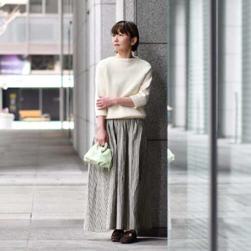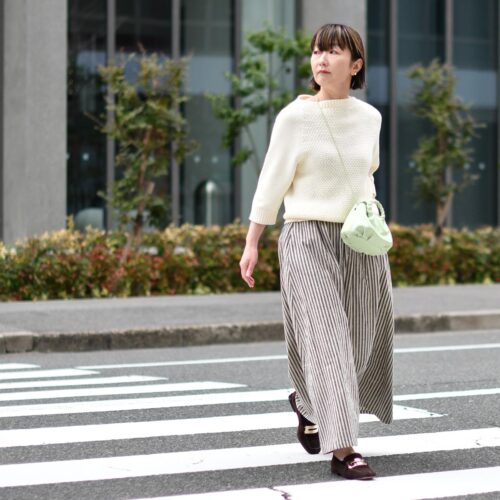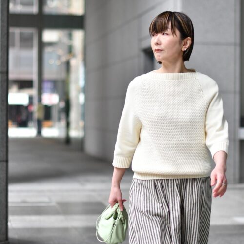 本日はYURI PARKの上品な七分袖ニットに、足元はローファーでタウン仕様にいたしました。