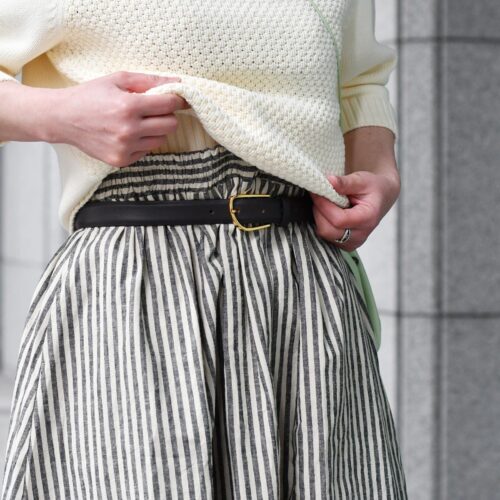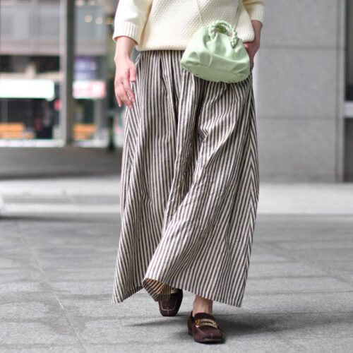 Placide【プラシーデ】ストライプスカート Jupe Naxi 002 stripe Natural BLACK リネン コットン アイボリー チャコール