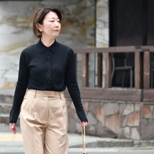 凛とした気品も感じられるコーディネートに。