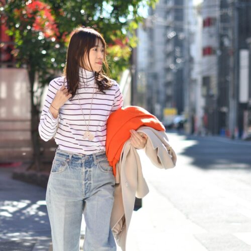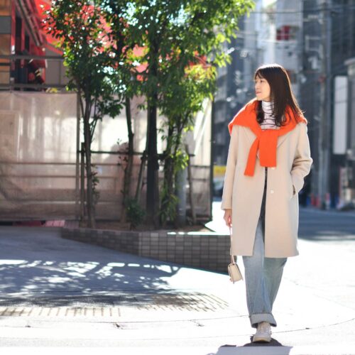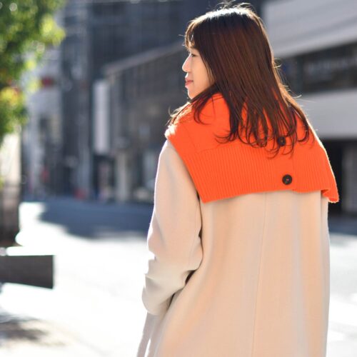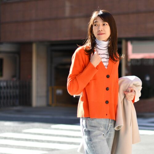気分が上がる綺麗なオレンジのカーディガンをプラス致しました。