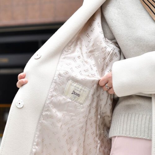 丸みを帯びたシルエットが女性らしいHERNOのチェスターコート。