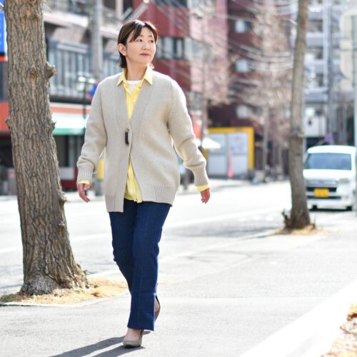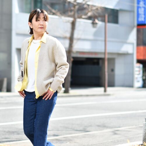 イエローのFinamoreシャツで春の気分を取り入れつつ