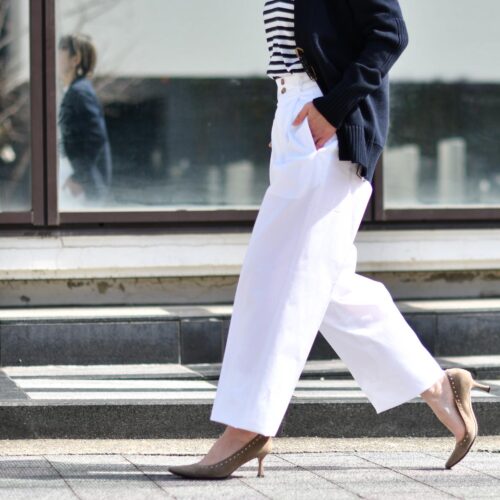 パンツ丈も短めにし、くるぶしを少しのぞかせれば
