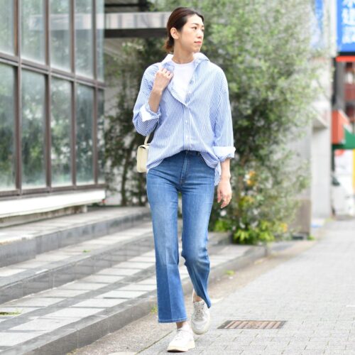 フレアーデニム&注目度の高いAUTRYのスニーカーでカジュアルにスタイリング致しました。
