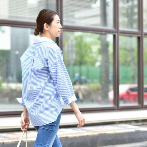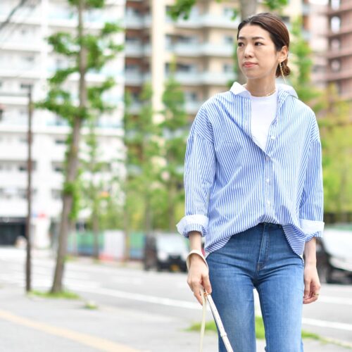 クレリックシャツでカジュアルスタイル