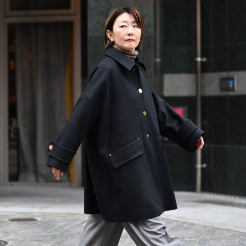 MACKINTOSH【マッキントッシュ】ステンカラーコート NEW HUMBIE 2K01 BLACK ウール ブラック レオパード