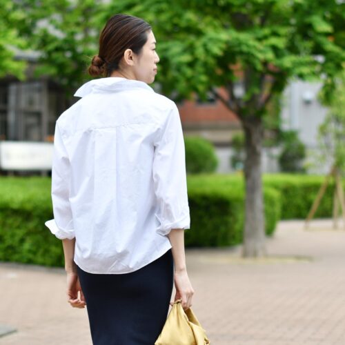 身頃はややゆったりとしたボックスシルエットをベースとし