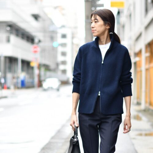 ジップアップニットでシックでシャープに!