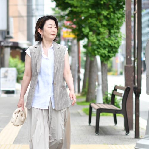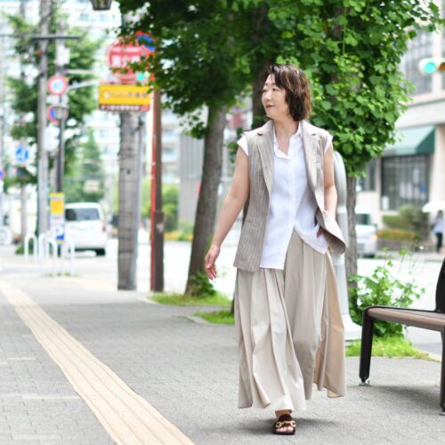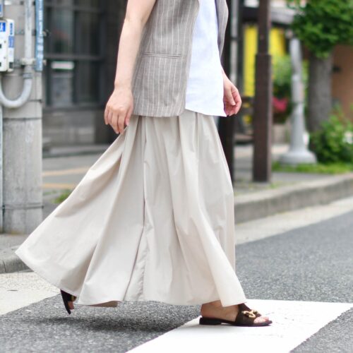 本日は、ジレを使ったスカートスタイルのご紹介でございます。