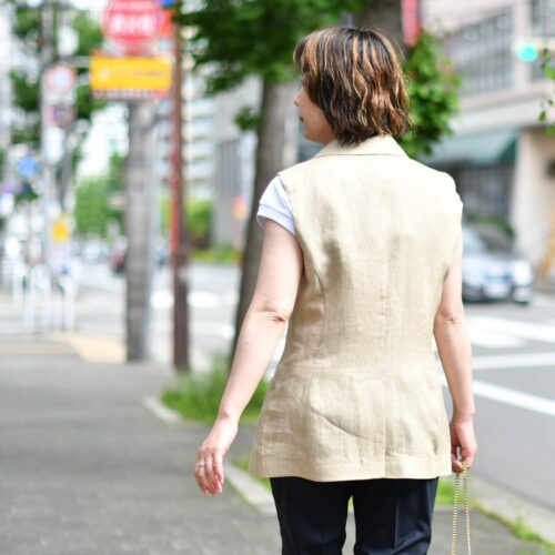 ジレの肩口からチョコッとのぞくフレンチスリーブも可愛いですよね。