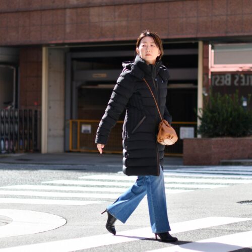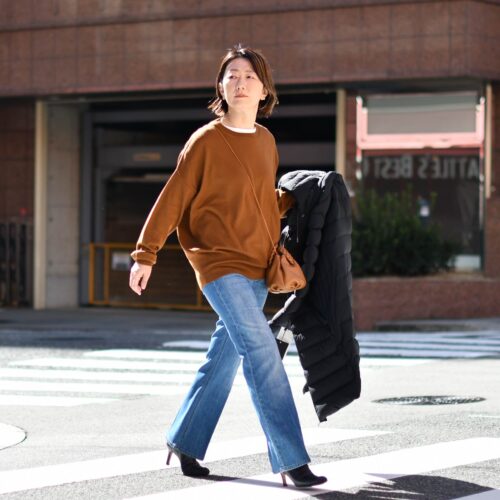 デニムにサラッと羽織るだけで暖かく、スタイル良く。
