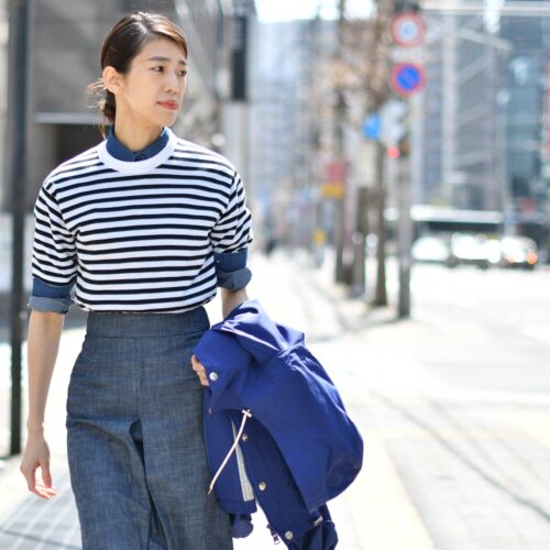 インナーにはFinamoreの長袖ダンガリーシャツをレイヤード。