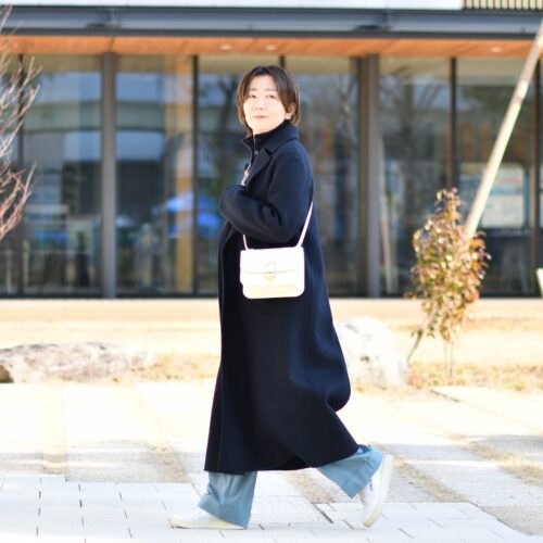 防寒&ボタンをポイントにスタイリング。
