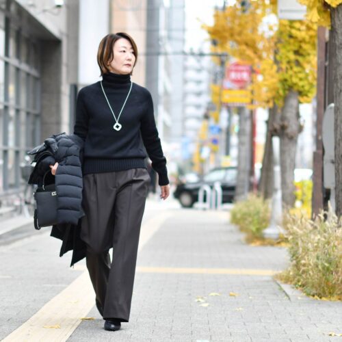 インナーは、保温力のあるカシミヤ混ミドルゲージニットで暖かく◎