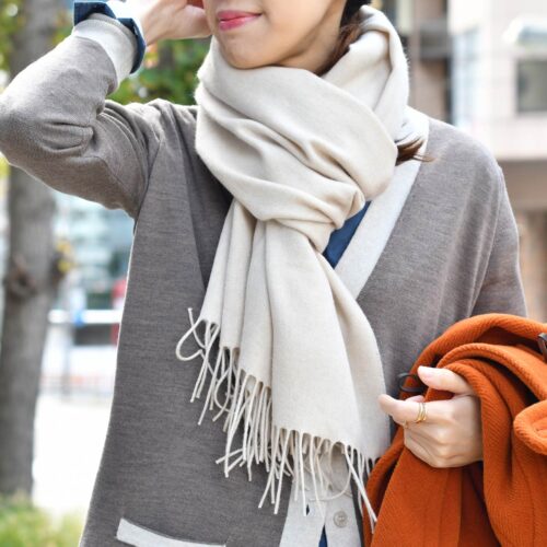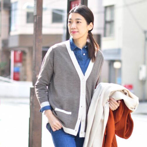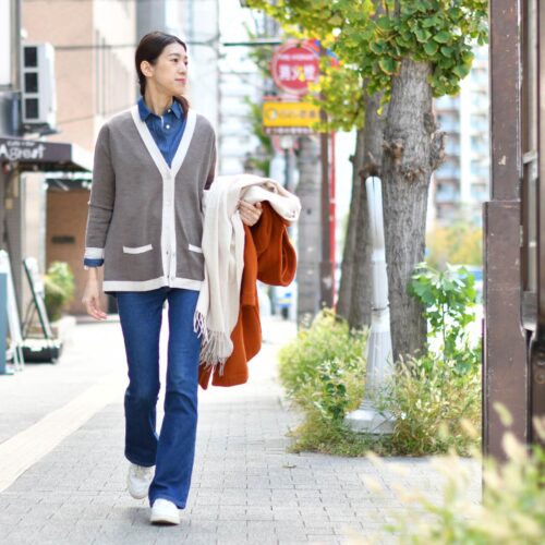 カーディガン合わせでカジュアルにスタイリング致しました。