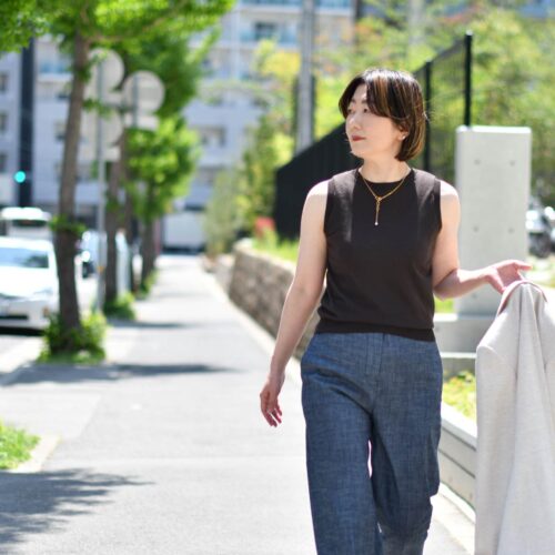 ニットならではの伸縮性はもちろん、リネンのシャリ感もあり通気性もよく。