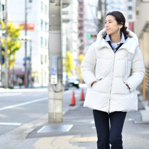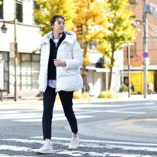 アウターにホワイトのダウンを合わせる事で