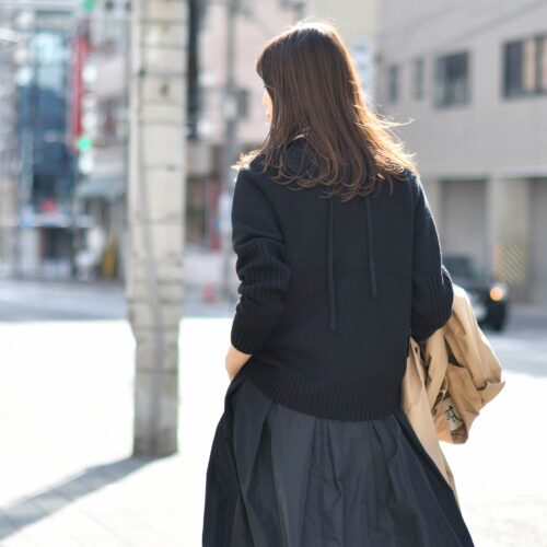 ニットとの風合いの変化がありオールブラックのスタイルも