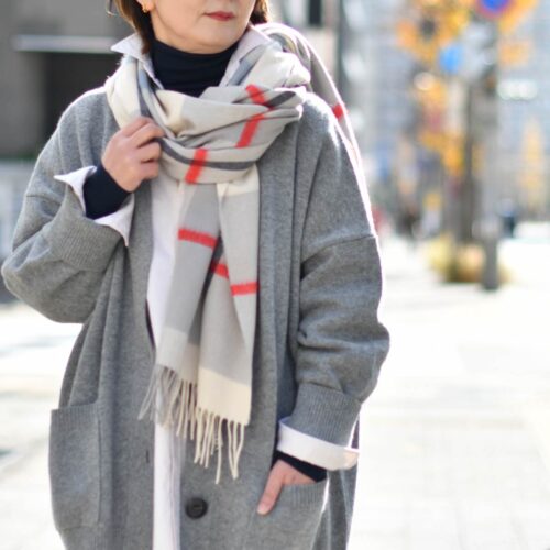 ちょっとそこまでのお出かけには、ストールをクルッと引っかけて。