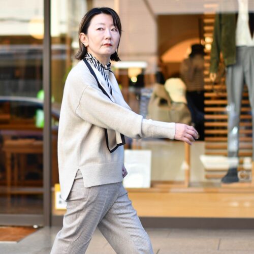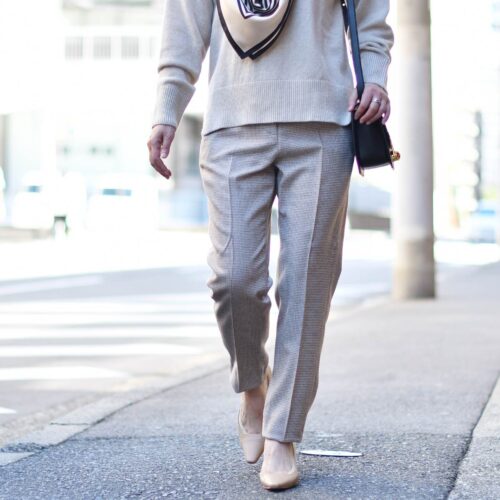 ニュアンスカラーのワントーンコーディネート。