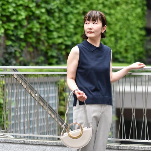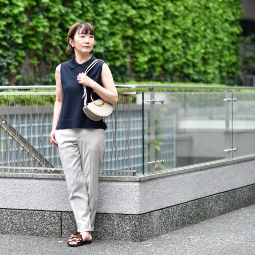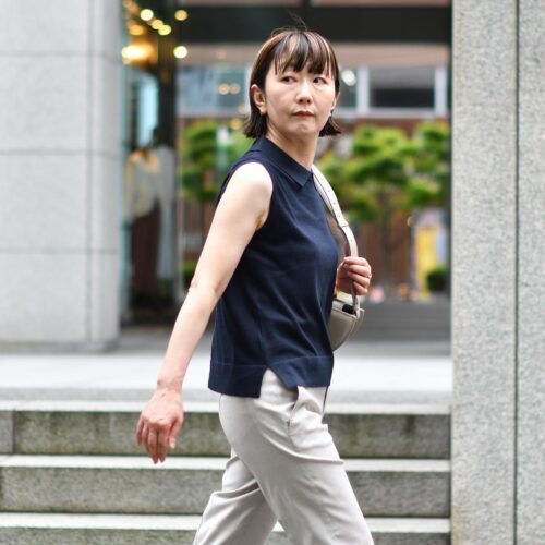 ノースリーブで初夏の装い。