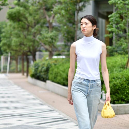 イエローのバックで差し色を加え