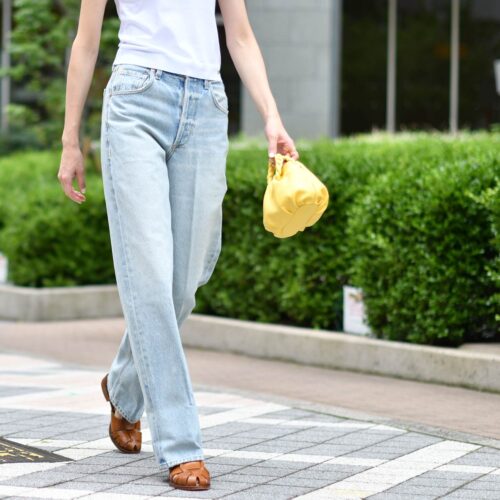 バッグで華やかさを加えたカジュアルスタイル