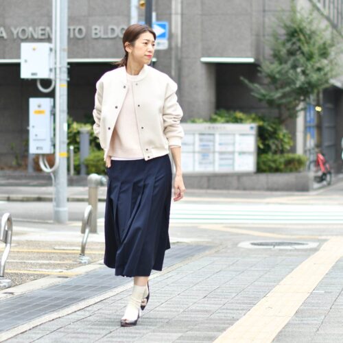 今シーズンの大注目プリーツスカートを使用した