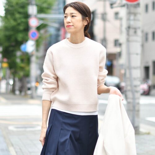 アイボリーのお色目同士でレイヤードし、