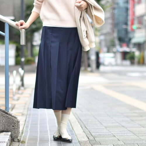 プリーツスカートはJOHNSMEDLEYのお品。