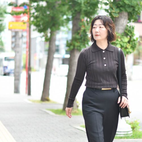 ジャストフィットなボディラインでエレガントさのあるスタイルを