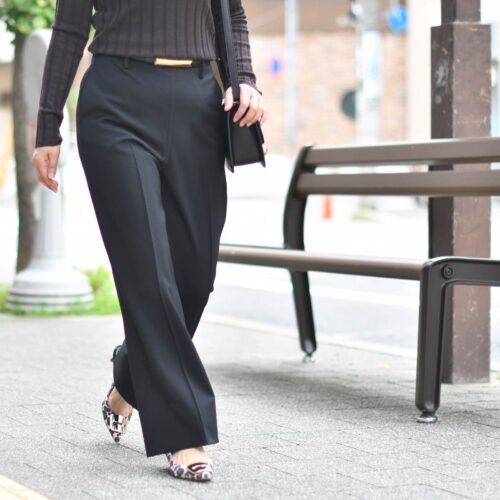 デザインと素材が互いを引き立てあう上品さのあるパンツです。