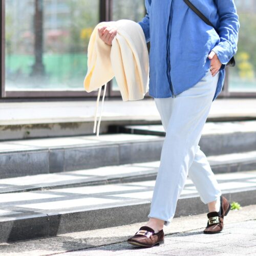 ブルーのワントーンコーディネート。
