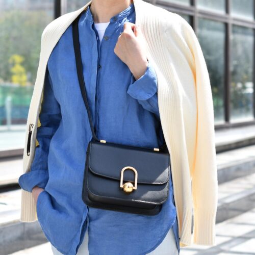 小物のゴールドバックルが艶めきよく、