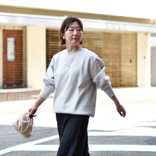 ボリュームのあるトップスでもバランス良くお召しいただけますよ。