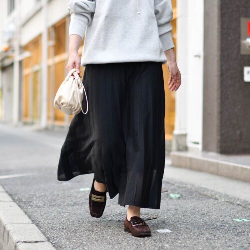 ブラックスカートでも重たい感じにはならずに着用できます。