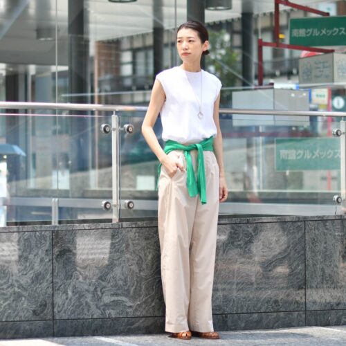 フンワリとしたワイドシルエットのパンツは