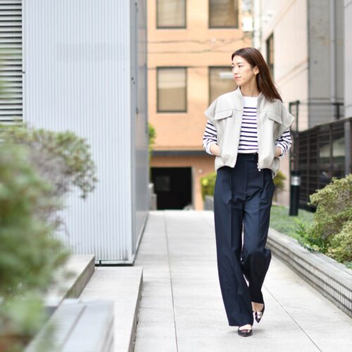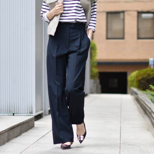 ボトムスはPT TORINOのワイドパンツで品よく。
