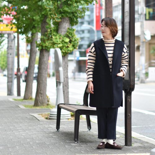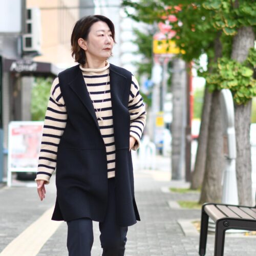 ヒップが隠れる着丈ですので、腰まわりをカバーしてくれるのも嬉しいポイントですね。