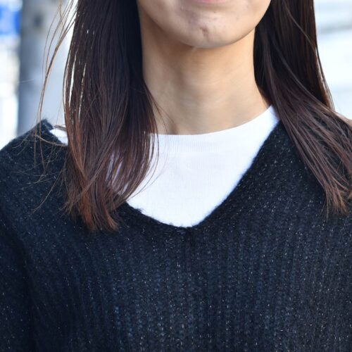 ラメニットでトレンド感も感じるスタイル。