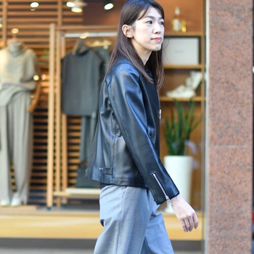 ラムレザーの力強さが相まったコーディネートにいたしました。