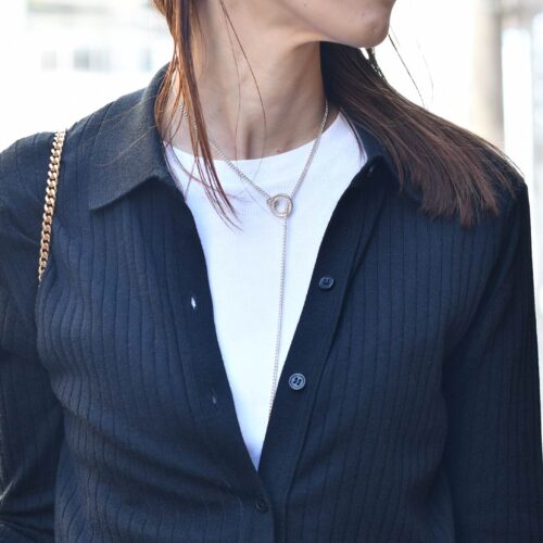 インナーにはポロカーデをTシャツ合わせし、