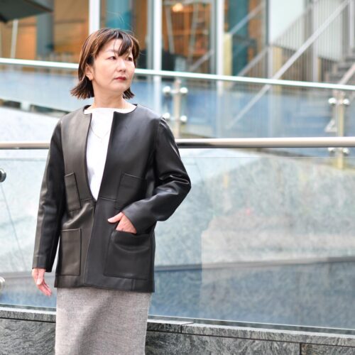フロントの4つポケットがアクセントのノーカラージャケット。
