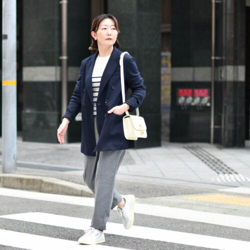 定番のボーダーとの合わせもダブルデザインですと鮮度が上がります。