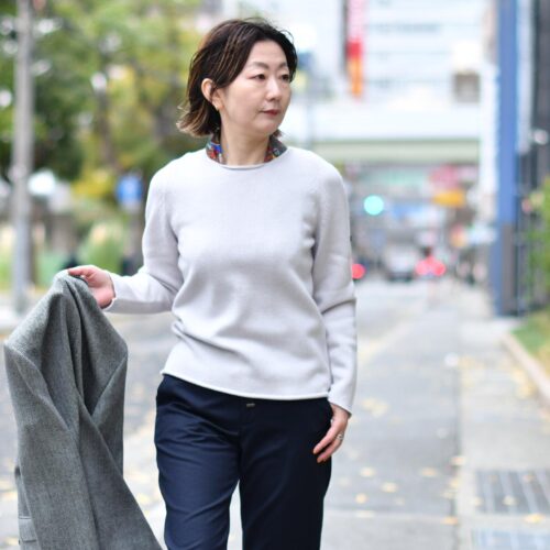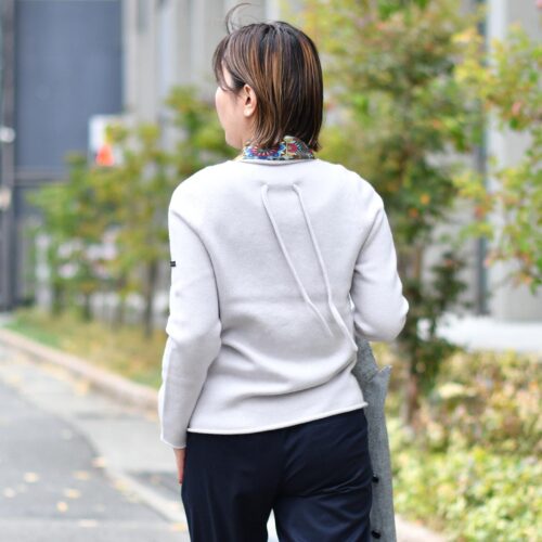 ラウンドネックデザインですので、オンオフ着回しも効きますよ。