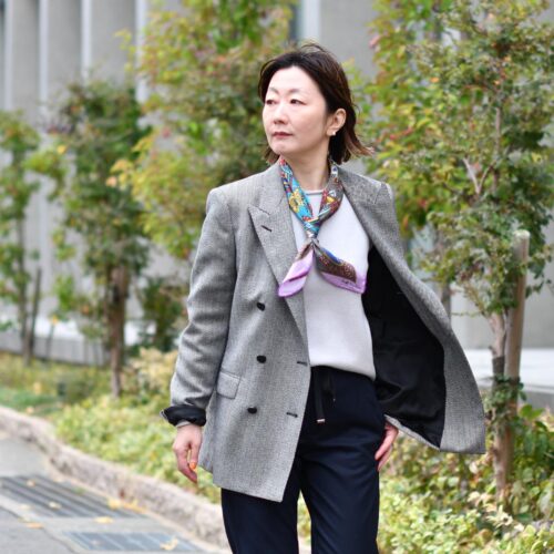 絶妙なフィッティングで型崩れしにくく、YURI PARKらしい風合いの仕上がりです。